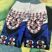 大人気ホラー映画ヘルレイザーのピンヘッドの靴下です。